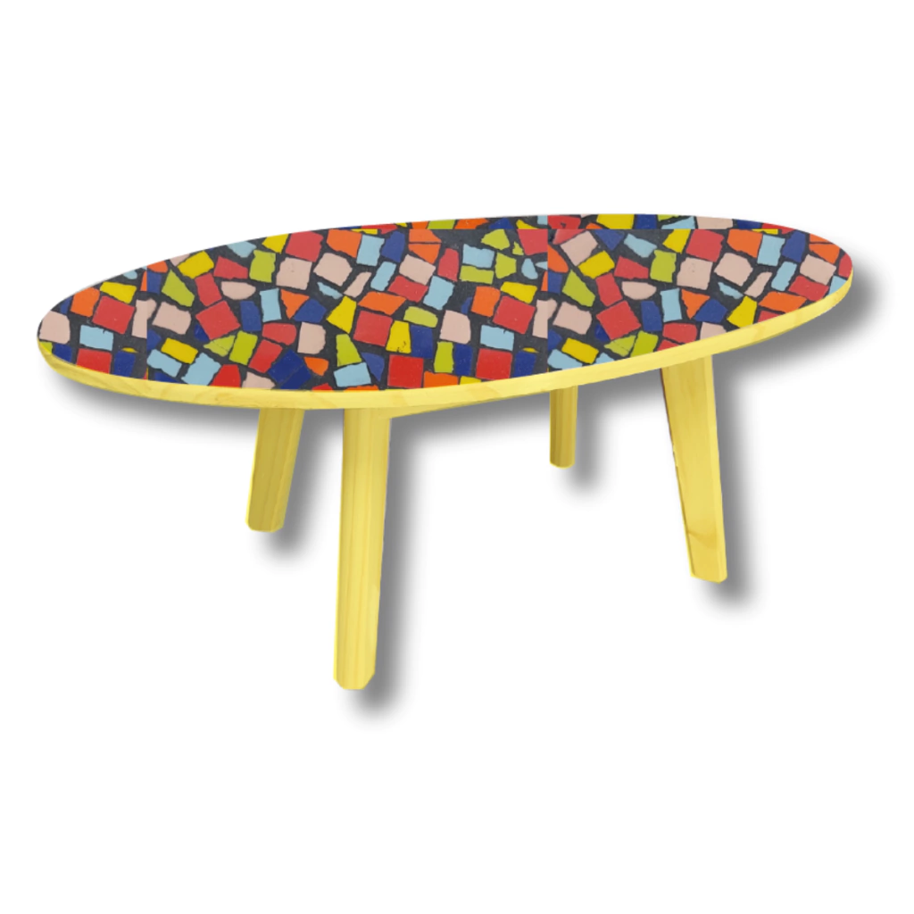 Dale vida a tu hogar con esta mesa ratona ovalada, un lienzo perfecto para proyectos de decoración con materiales cerámicos. Ideal para quienes buscan combinar funcionalidad con arte en un solo mueble.